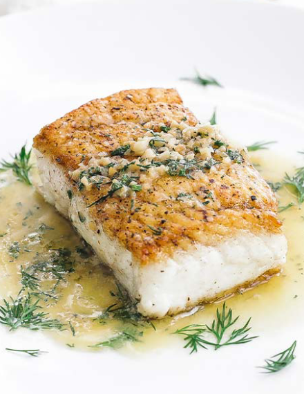 Pan seared Halibut with lemon dill butter